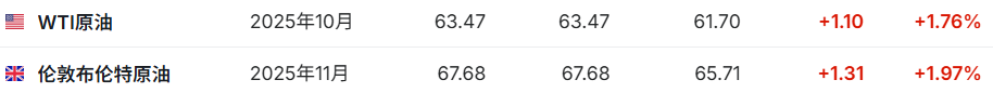 3. 截至发稿,WTI原油涨1.76%,报63.47美元/桶。布伦特原油涨1.97%,报67.68美元/桶。
